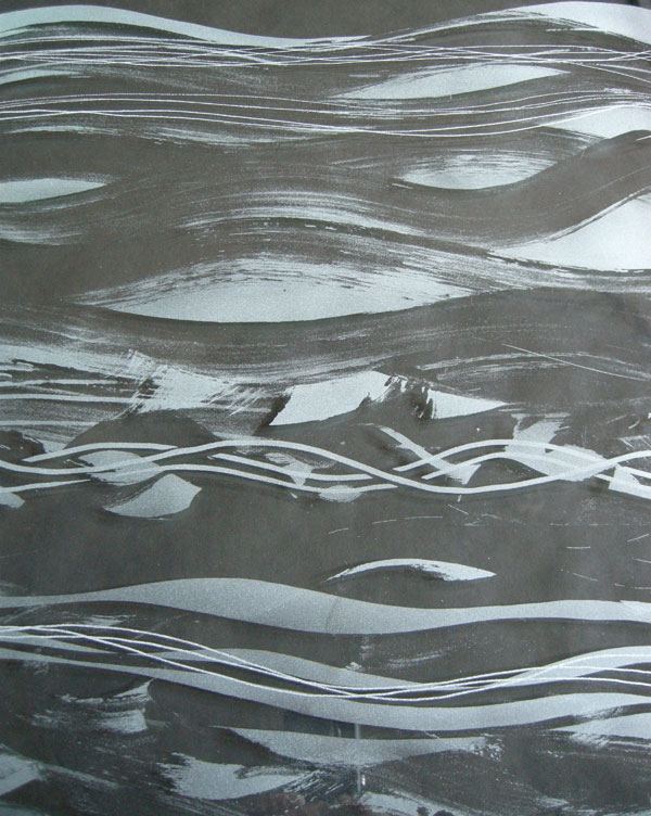 New proof prints from “Netscape” a set of three 12mm glass plates – combination of sandblasting, cutting and engraving using a variety of masking processes.