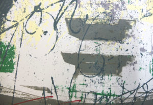 Two images for the “Feral Landscape” winter exhibition at the Edinburgh Printmakers. These screenprints are of the WWII 6″ gun emplacements and communication towers on Hoxa Head which is on South Ronaldsay, Orkney. The imagery comes from graffiti and the remaining plaster within some of the buildings still standing on the site. For more information about the exhibition and opening times and dates visit the Edinburgh Printmakers.