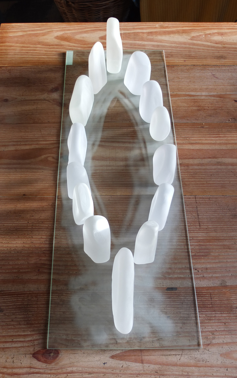 Still in production this glass Dolmen is nearly ready for completion…… Not quite there but nearly! Plus an early set up for the new “Boat Setting” that I am currently working on.